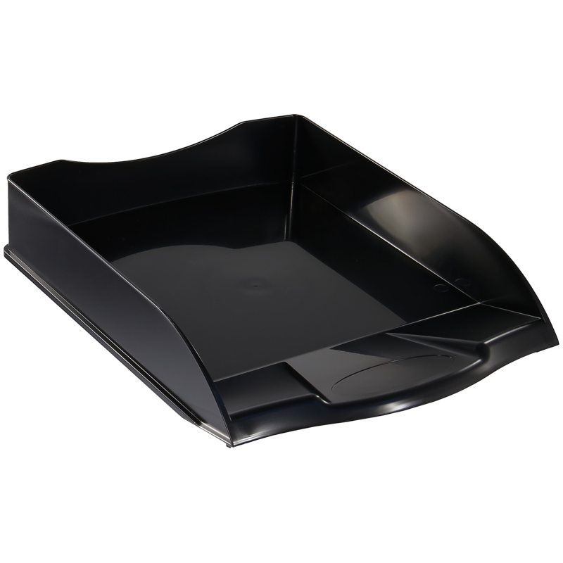 Горизонтальный лоток для хранения бумаг формата А4 представлен в стильном современном дизайне. Корпус представлен в черном цвете. Лотки могут устанавливаться один на другой.