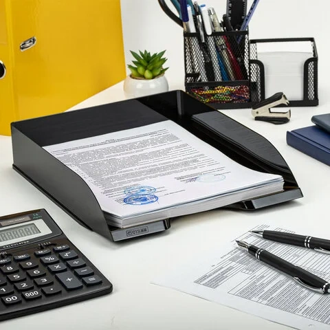 Лоток горизонтальный 'СТАММ' серии 'Дельта' предназначен для хранения и систематизации бумажной продукции формата А4. Легкий, прочный, компактный корпус. Современный дизайн, сочетание глянцевой и матовой поверхности. Предусмотрена возможность установки одного лотка на другой. Изделие высотой 60мм, глубиной 315мм и шириной 250мм изготовлено из качественного пластика, вмещает до 300 листов. Индивидуальная упаковка - пакет. Цвет лотка - черный.