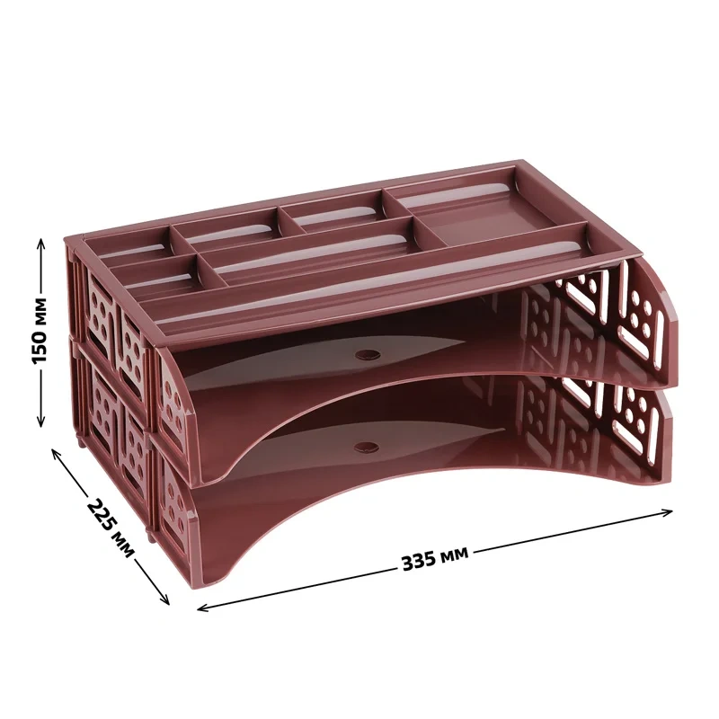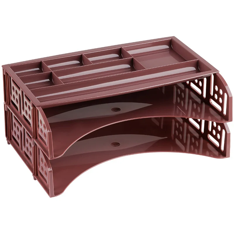 Лоток для бумаг горизонтальный Стамм 'Field', набор 2шт. + органайзер, бордовый Agra