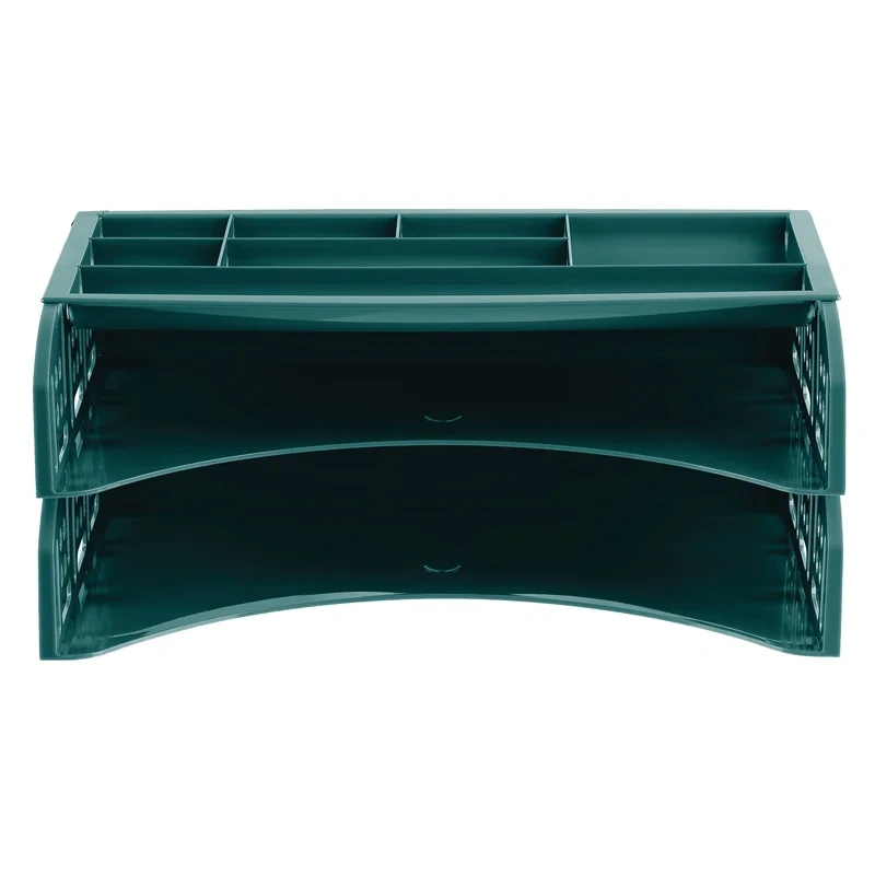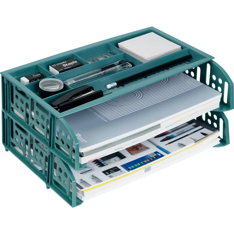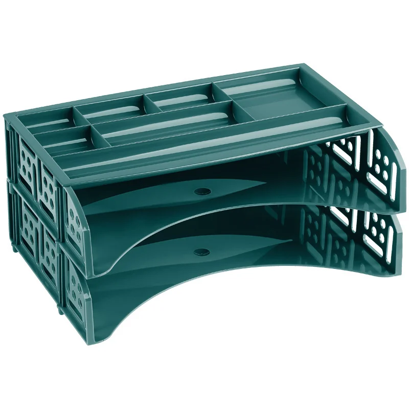 Лоток для бумаг горизонтальный Стамм 'Field', набор 2шт. + органайзер, зеленый NY