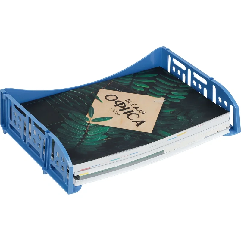 Лоток для бумаг горизонтальный Стамм 'Field', широкая загрузка, голубой Berlin