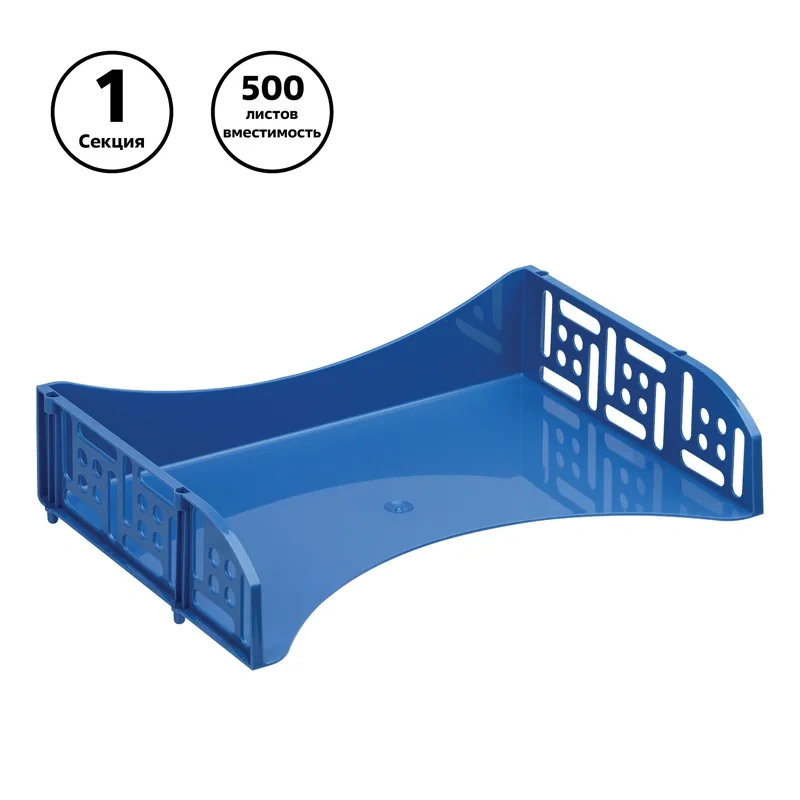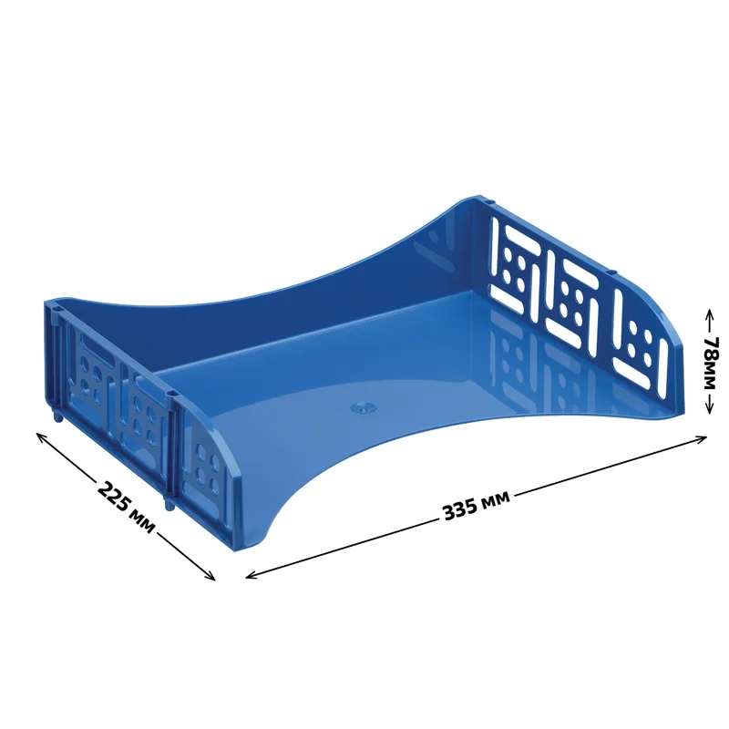 Лоток горизонтальный 'СТАММ' серии 'Field' предназначен для хранения и организации бумажной продукции формата А4. Эксклюзивный дизайн, прочный, вместительный корпус. Широкая загрузка во фронтальной части лотка облегчает изъятие документов. Изделие высотой 78мм, глубиной 225мм и длиной 335мм изготовлен из качественного пластика. Вмещает 500 листов. Цвет - сине-голубой.
