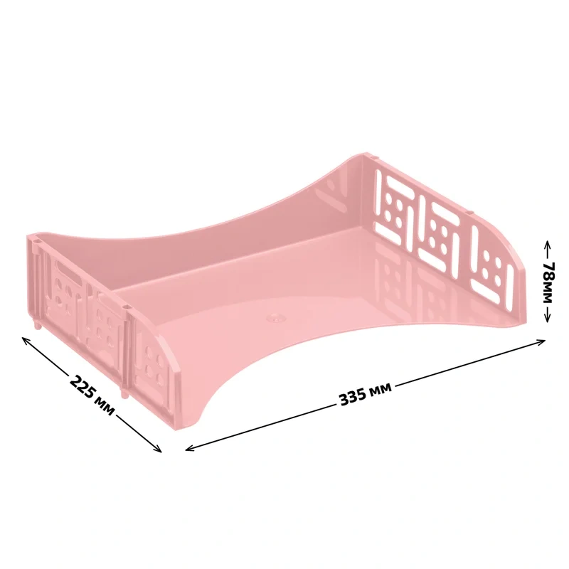 Лоток горизонтальный 'СТАММ' серии 'Field' предназначен для хранения и организации бумажной продукции формата А4. Эксклюзивный дизайн, прочный, вместительный корпус. Широкая загрузка во фронтальной части лотка облегчает изъятие документов. Изделие высотой 78мм, глубиной 225мм и длиной 335мм изготовлен из качественного пластика. Вмещает 500 листов. Цвет - розовый.