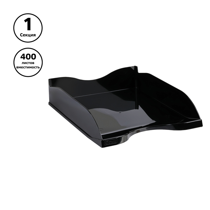 Лоток горизонтальный для хранения документации формата А4. Современный дизайн. Прочный, вместительный, имеет гладкую глянцевую поверхность. Лотки надежно с фиксацией устанавливаются друг на друга. Удобная транспортировка и хранение.