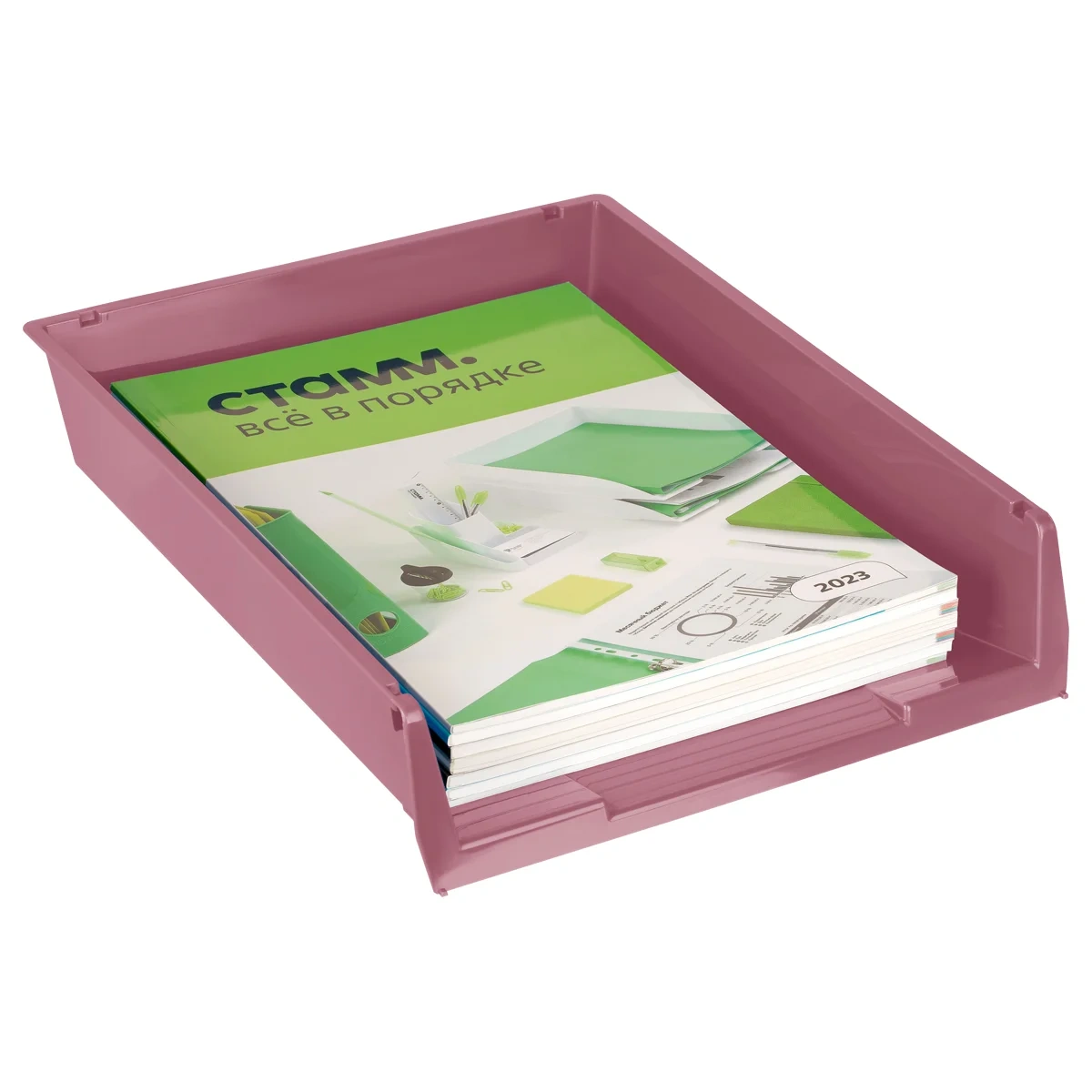 Горизонтальный лоток для бумаг СТАММ серии «Респект» предназначен для хранения документов формата А4. Лёгкий, прочный и вместительный сетчатый корпус изготовлен из качественного полистирола. Размеры изделия — 350*272*65 мм. Лоток вмещает до 400 листов. Конструкция предусматривает возможность установки одного лотка на другой. Индивидуальная упаковка — пакет. Цвет лотка — бордовый.