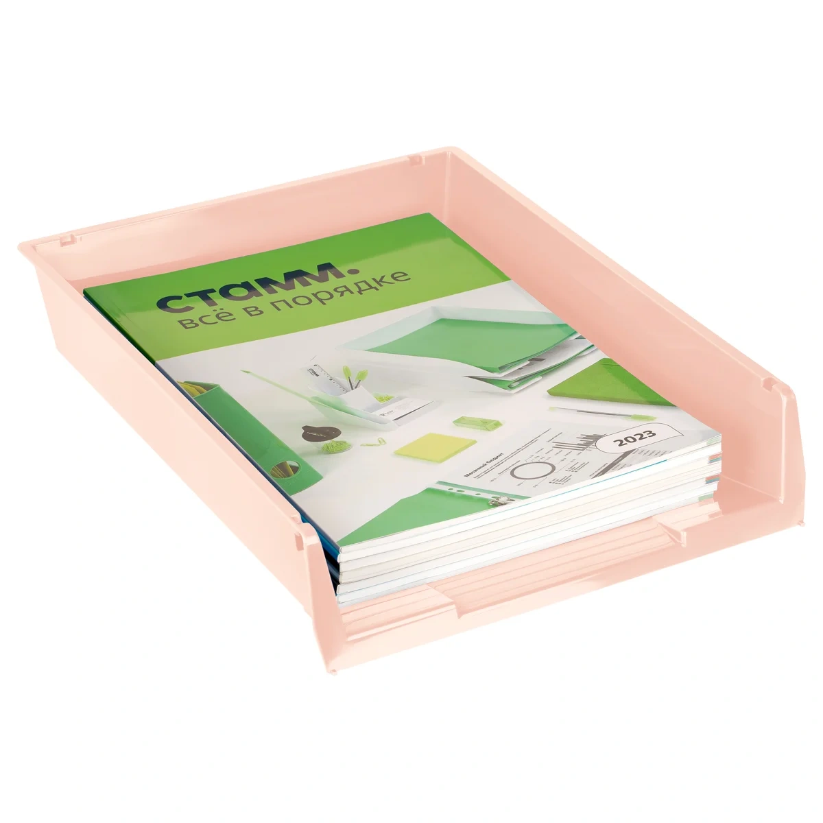 Горизонтальный лоток для бумаг СТАММ серии «Респект» предназначен для хранения документов формата А4. Лёгкий, прочный и вместительный сетчатый корпус изготовлен из качественного полистирола. Размеры изделия — 350*272*65 мм. Лоток вмещает до 400 листов. Конструкция предусматривает возможность установки одного лотка на другой. Индивидуальная упаковка — пакет. Цвет лотка — розовый.