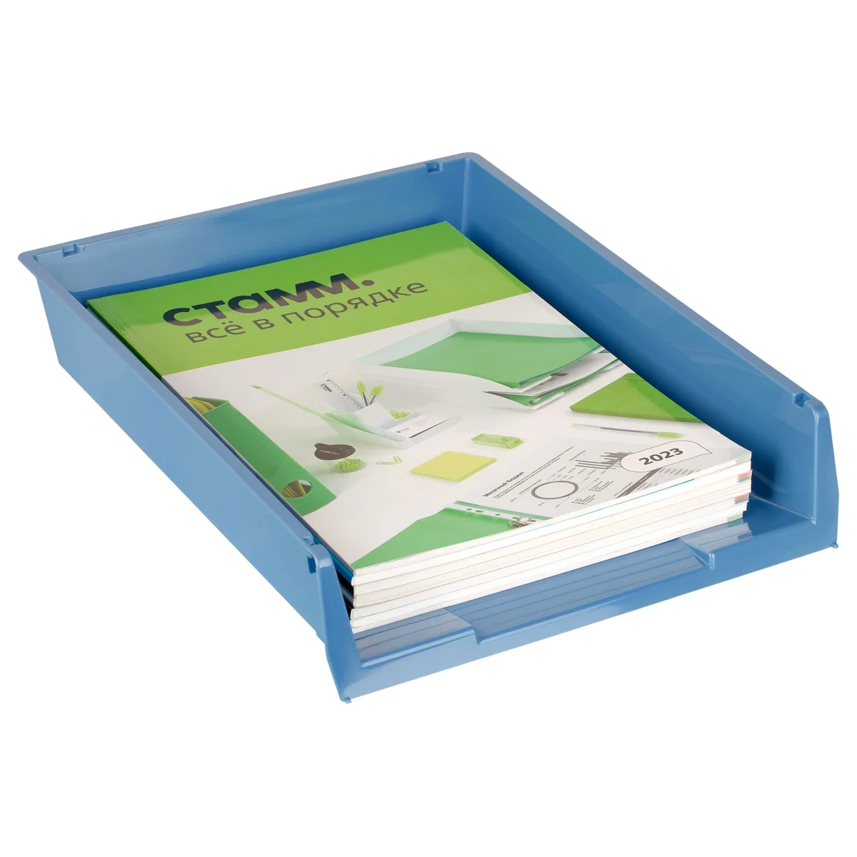 Горизонтальный лоток для бумаг СТАММ серии «Респект» предназначен для хранения документов формата А4. Лёгкий, прочный и вместительный сетчатый корпус изготовлен из качественного полистирола. Размеры изделия — 350*272*65 мм. Лоток вмещает до 400 листов. Конструкция предусматривает возможность установки одного лотка на другой. Индивидуальная упаковка — пакет. Цвет лотка — сине-голубой.
