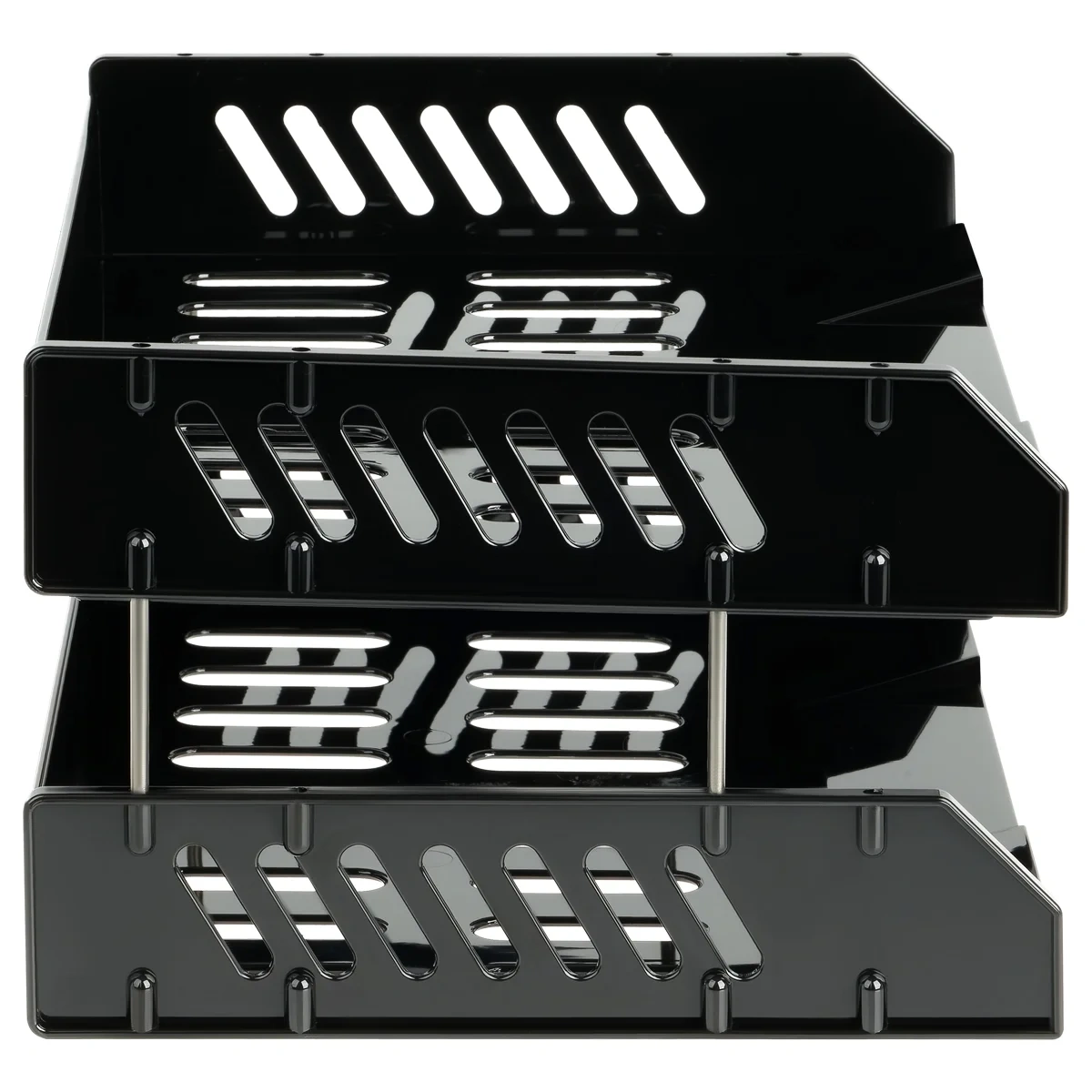 Лоток для бумаг горизонтальный СТАММ 'Сити', набор 2шт., на мет. стержнях, широкая загрузка, черный