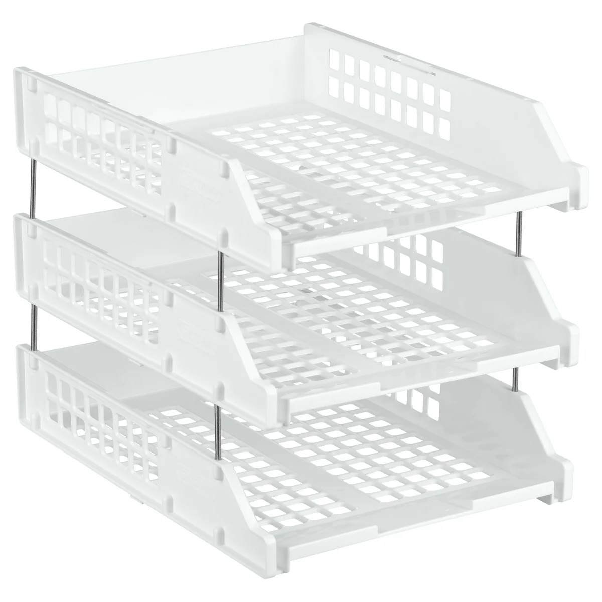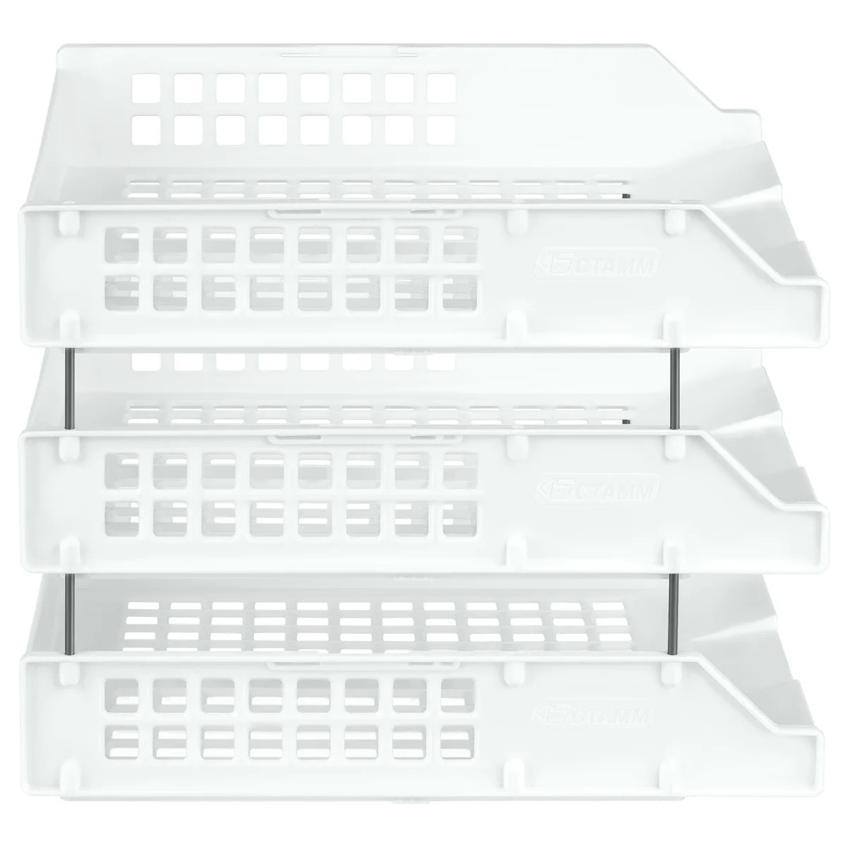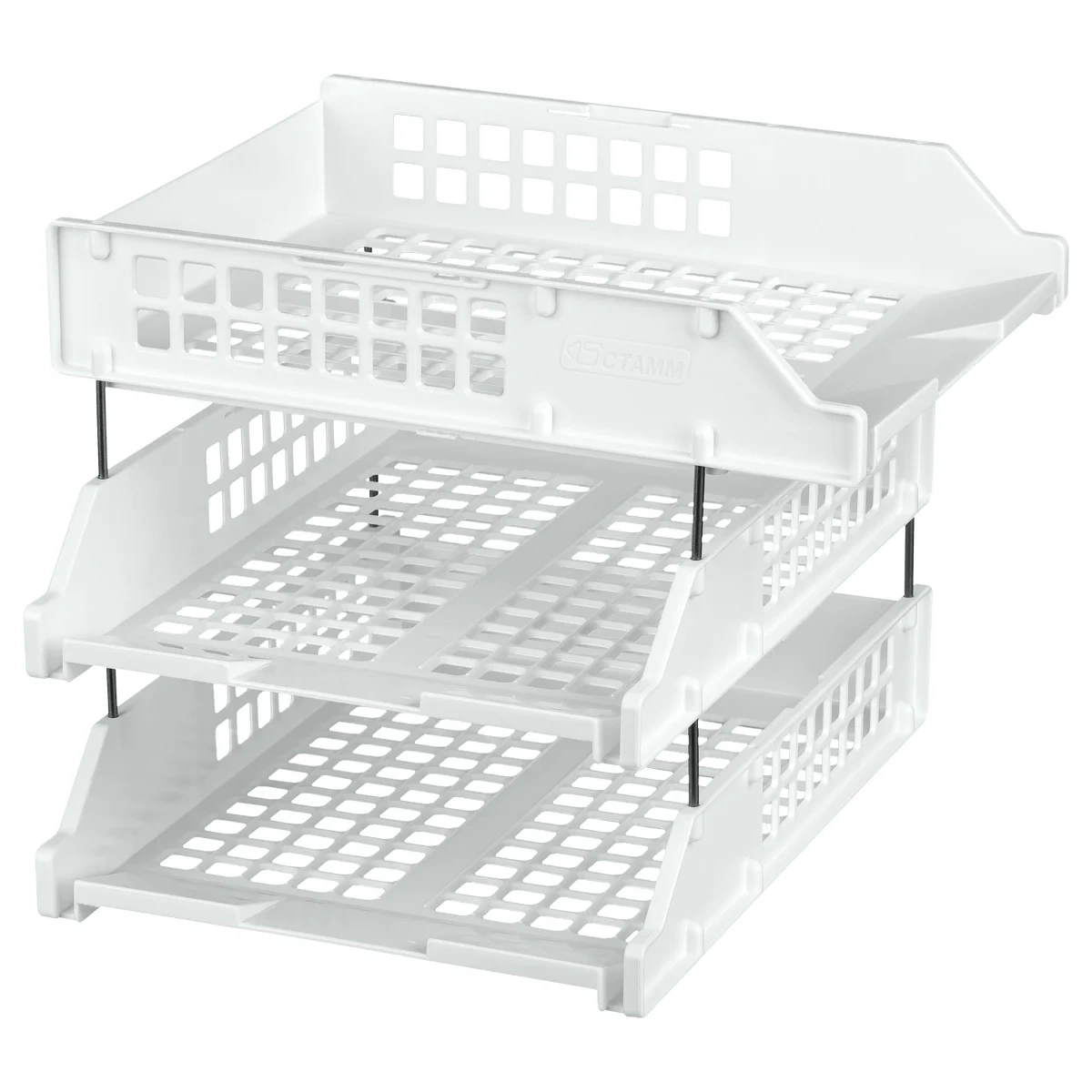 Лоток для бумаг горизонтальный СТАММ 'Strong', набор 3шт., на метал. стержнях, белый