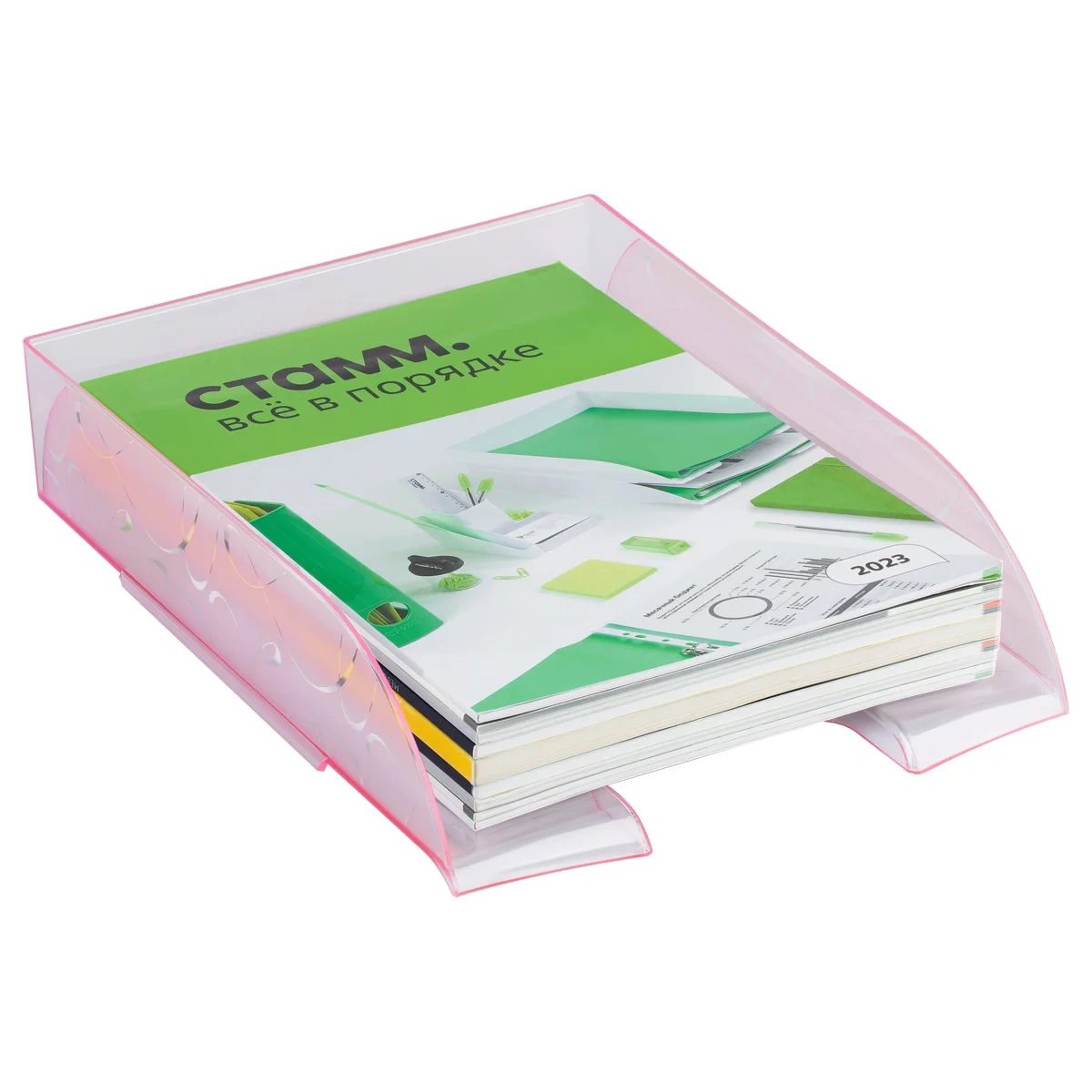 Лоток для бумаг горизонтальный СТАММ 'Вега', тонированный неоновый розовый
