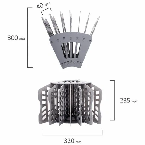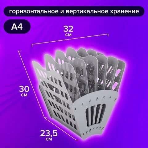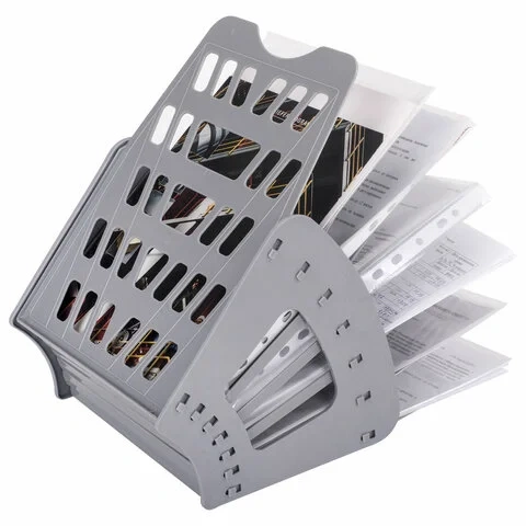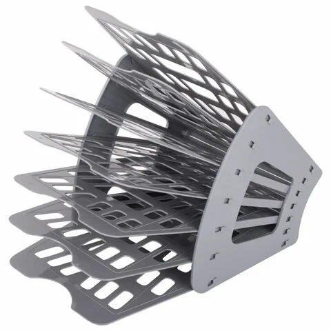 Лоток для бумаг веерный Brauberg Basic А4, серый, сетчатый, 6 отделений
