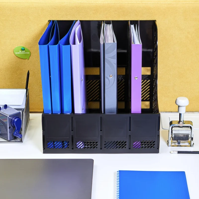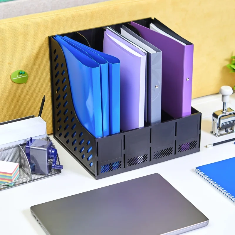 Лотки для бумаг секционные Attache 370мм, черный, 4 отделения, сборный