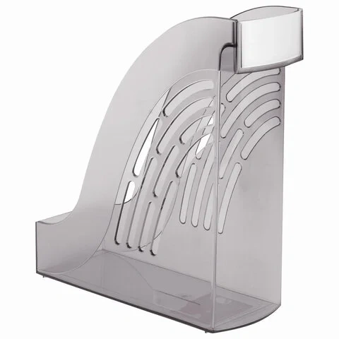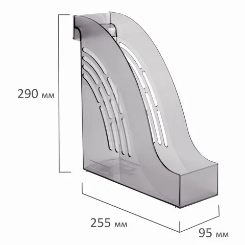 Отлично подходит для хранения бумажной продукции формата А4 на столе или в шкафу. Изготовлен из полистирола тонированного серого цвета. Имеется табличка для маркировки. Одно вместительное отделение шириной 95 мм. Устойчивая конструкция. Размер - 255х290 мм.