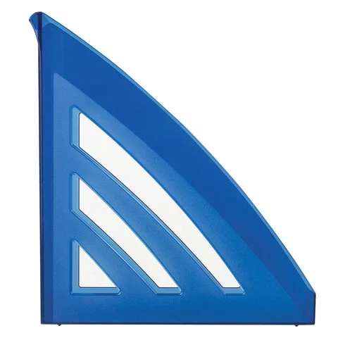 Изготовлен из прочного полистирола. Размер (ГхШхВ) - 245х90х285 мм. Обладает устойчивой конструкцией, благодаря которой удобен для хранения объемных документов и папок. Выполнен в тонированном синем цвете.