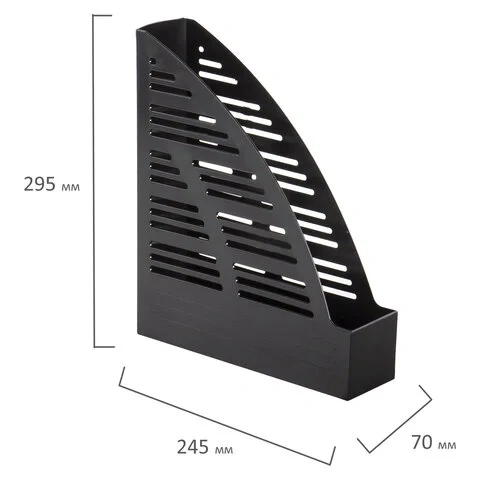 Изготовлен из прочного полистирола и имеет 1 отделение. Размер (ГхШхВ) - 245х70х295 мм. Обладает прочной сетчатой поверхностью и устойчивой конструкцией, благодаря которой является удобным для хранения объемных документов.