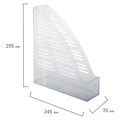 Изготовлен из прочного полистирола и имеет 1 отделение. Размер (ГхШхВ) - 245х70х295 мм. Обладает прочной сетчатой поверхностью и устойчивой конструкцией, благодаря которой является удобным для хранения объемных документов.