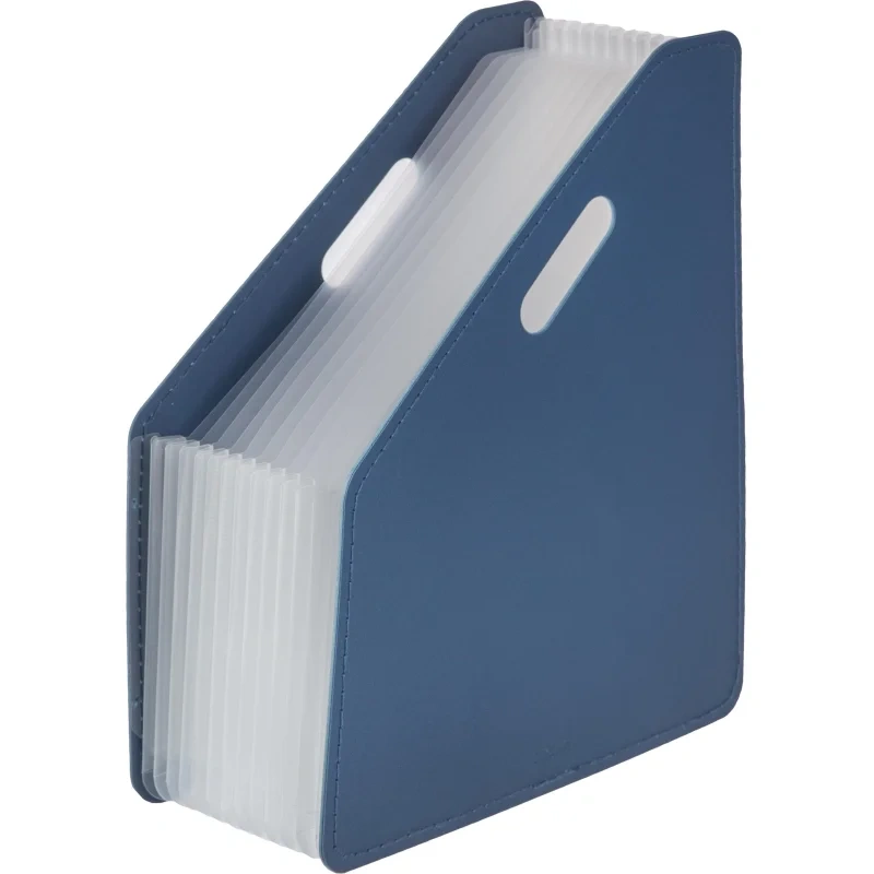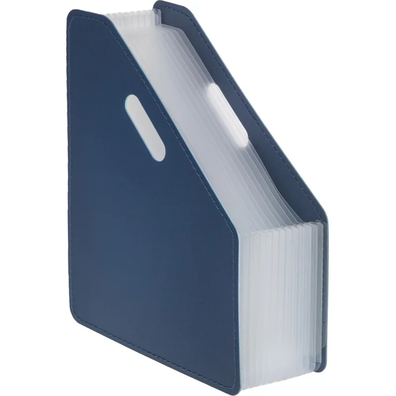 Вертикальный накопитель Deli для документов формата А4. Выполнен из прочного полипропилена темно-синего цвета. Стильный дизайн накопителя придаст Вашему рабочему месту изысканность и элегантность. Вместительный и портативный лоток обеспечит удобное хранение и доступ к документам. Содержит 13 расширяемых отделений, которые позволяют структурировать документы, а индексные ярлыки помогут вам легко и быстро найти нужный файл. Вертикальный накопитель для бумаг удобно хранить на столе, он не займет много места. Органайзер для бумаг продается уже в собранном виде.