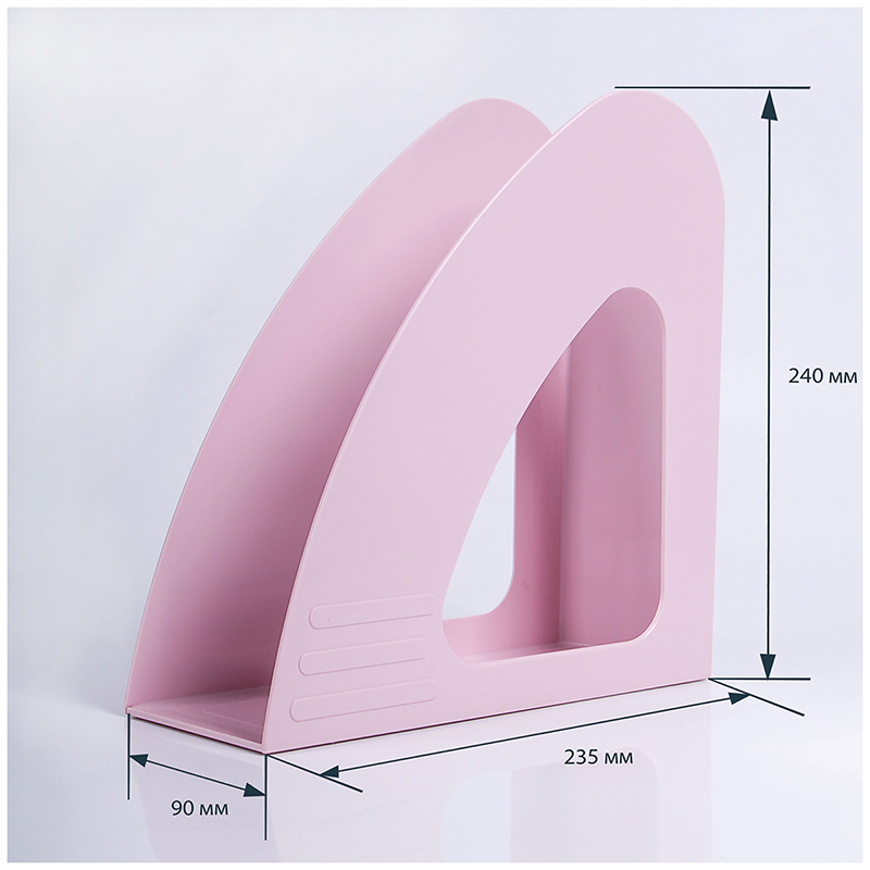 Вертикальный лоток для бумаг MESHU в стильном современном дизайне нежного розового цвета. Лоток имеет ширину 90 мм, что позволит хранить толстые книги, журналы, каталоги и различную документацию. Изготовлен из полистирола.