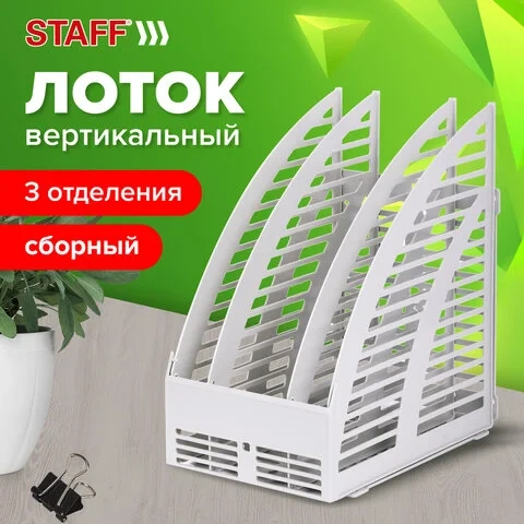 Лоток для бумаг вертикальный Staff серый, 160мм, 3 отделения