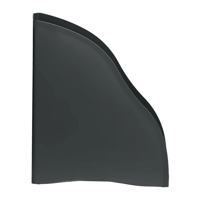 Лоток вертикальный для документации формата А4. Оригинальный дизайн, цельнолитые стенки. Эффектное сочетание шагреневой поверхности с гладкими линиями. Имеется отверстие на торцевой части для удобной переноски. Устойчивый, прочный корпус. Изготовлен из полистирола. Ширина лотка 8,5см.