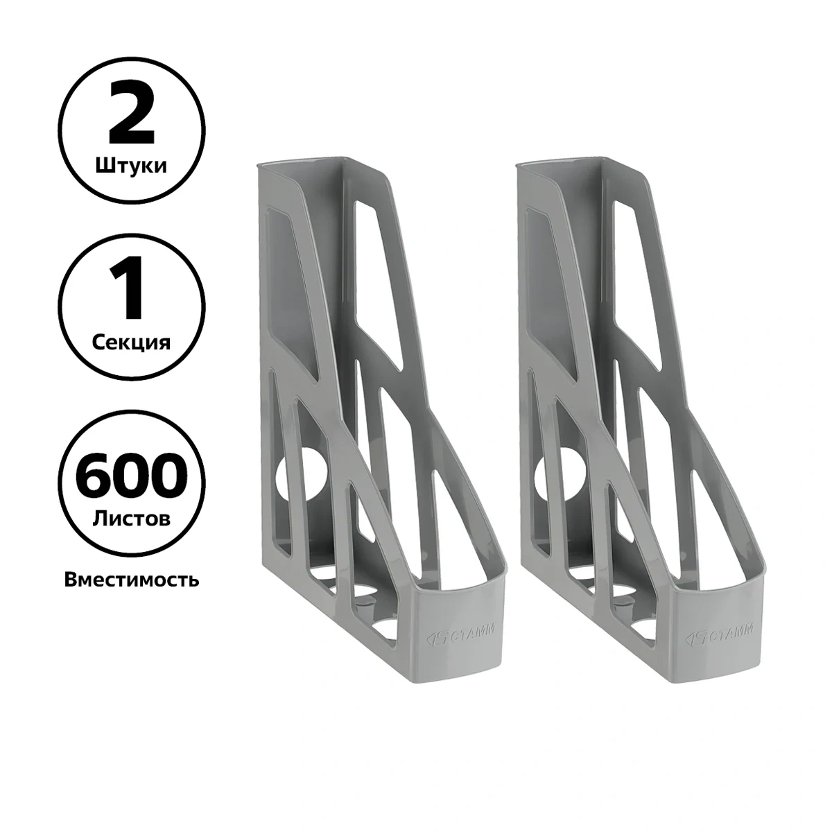 Лоток для бумаг вертикальный Стамм 'Лидер', серый, 2 шт. в уп.