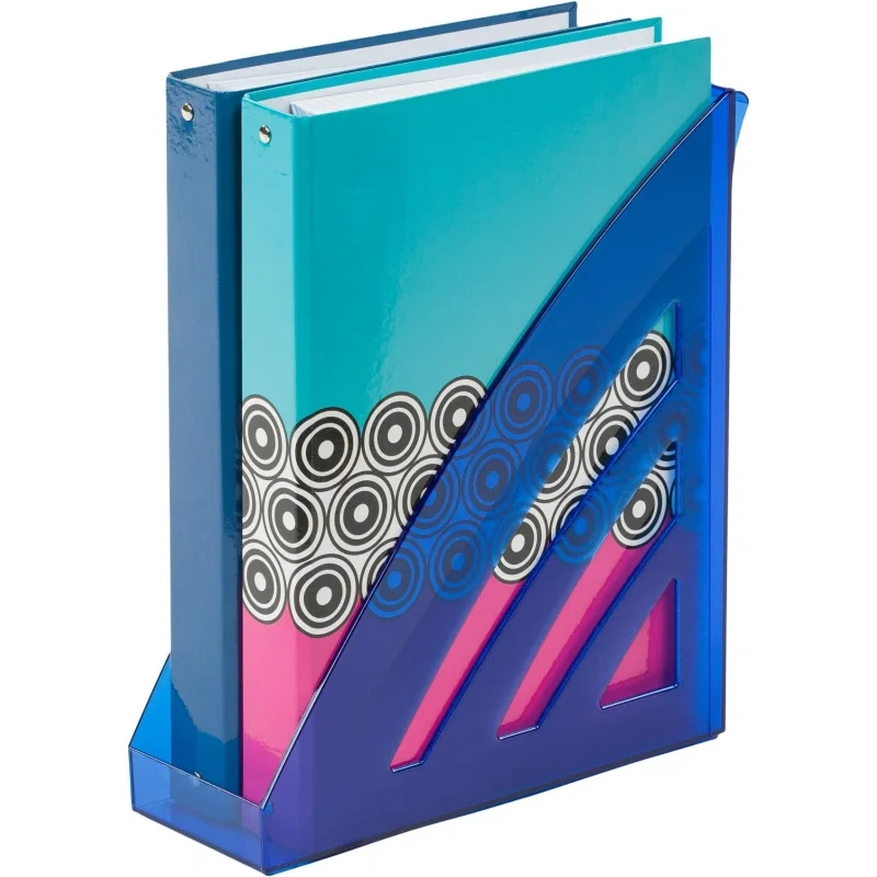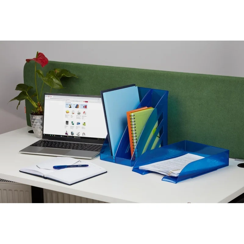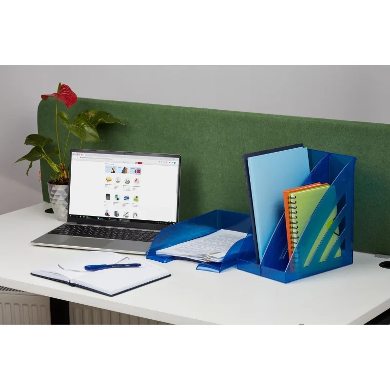 Лоток для бумаг вертикальный Стамм Лидер тонированный синий, 75мм