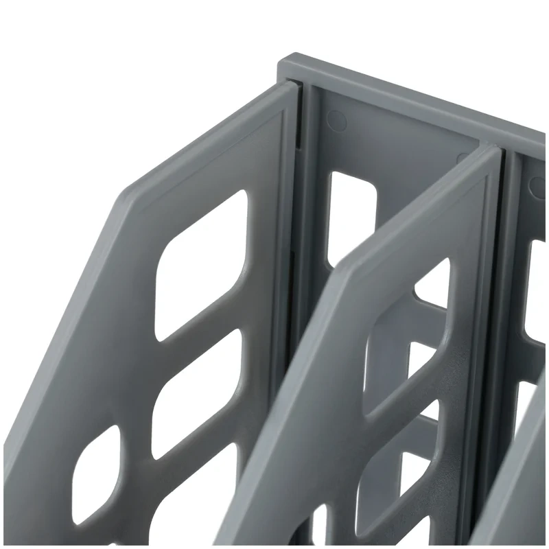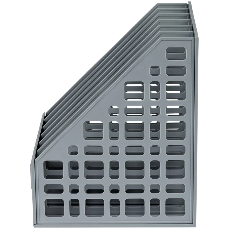 Вертикальный лоток для бумаг из высококачественного пластика с оригинальным дизайном и гладкой глянцевой поверхностью. Прочный, вместительный и устойчивый.