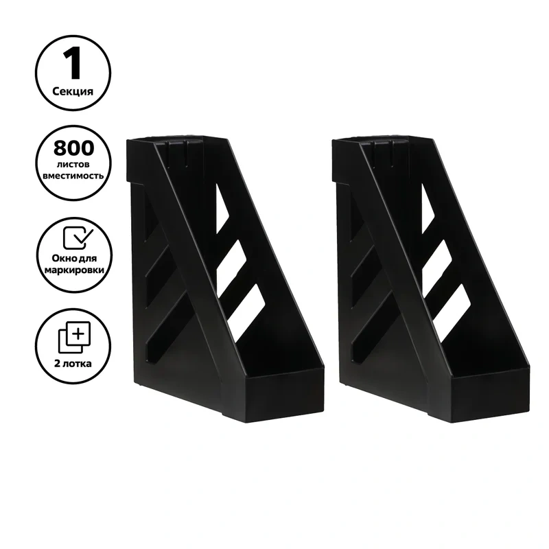 Набор из 2-х вертикальных лотков для документации формата А4. Устойчивый, вместительный, прочный корпус. Сменная табличка для маркировки. Гладкая, глянцевая поверхность. Ширина 10см.