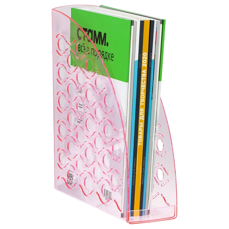 Лоток вертикальный СТАММ серии «Вега» предназначен для хранения бумажной продукции формата А4. Габариты изделия - 300*255*90 мм. Оригинальный дизайн. Устойчивый, вместительный и прочный корпус. Изделие шириной 90 мм вмещает до 650 листов. Изготовлен из качественного полистирола. Цвет лотка - тонированный неоновый розовый.