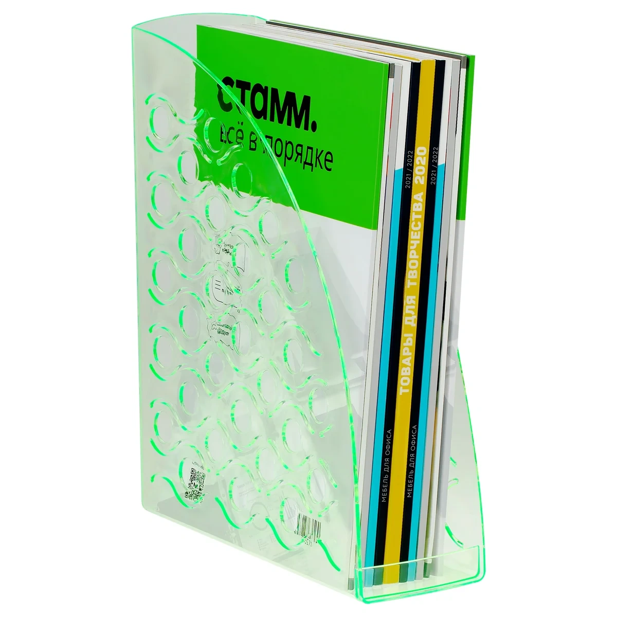 Лоток для бумаг вертикальный СТАММ 'Вега', тонированный неоновый зеленый, ширина 90мм