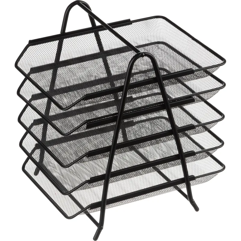 Горизонтальный лоток с пятью секциями предназначен для хранения документов, папок и бумаг формата А4. Он помогает упорядочить рабочее пространство и обеспечивает быстрый доступ к нужным материалам.