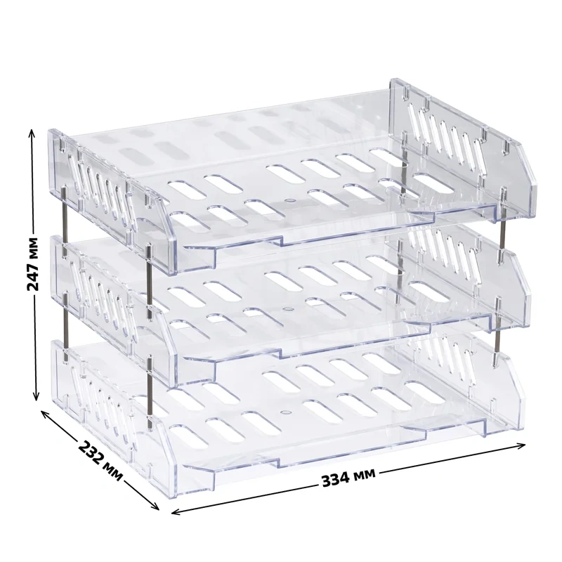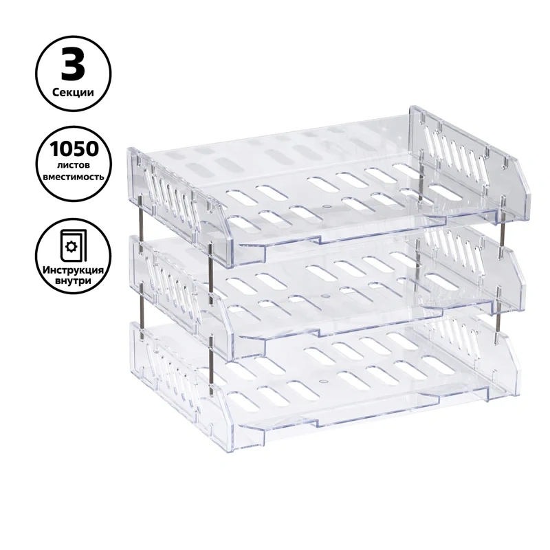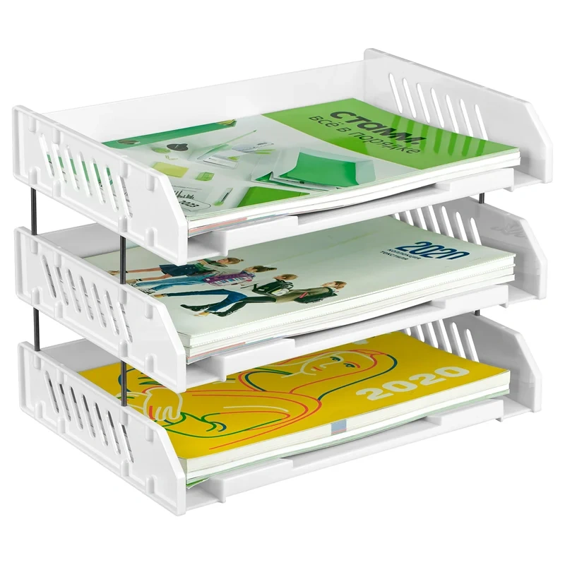 Лоток обладает возможностью установки одного на другой, что обеспечивает удобство организации рабочего пространства.