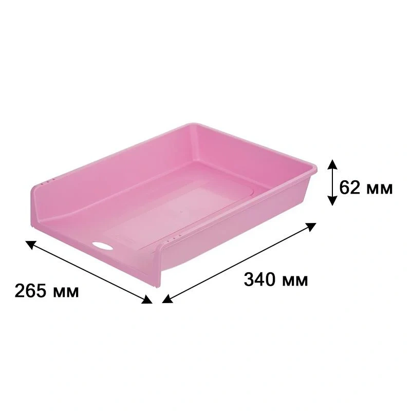 Лоток горизонтальный Attache Акварель розовый горизонтальный Лоток горизонтальный для бумаг формата А4. Имеет комбинированную поверхность - глянцевую и матовую. Вместительный, прочный корпус. Предусмотрена возможность установки одного лотка на другой. Изготовлен из качественного полистирола. Цвет лотка - розовый. Размеры (ВхШхГ): 62х265х340 мм.