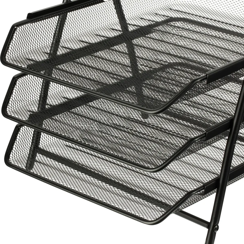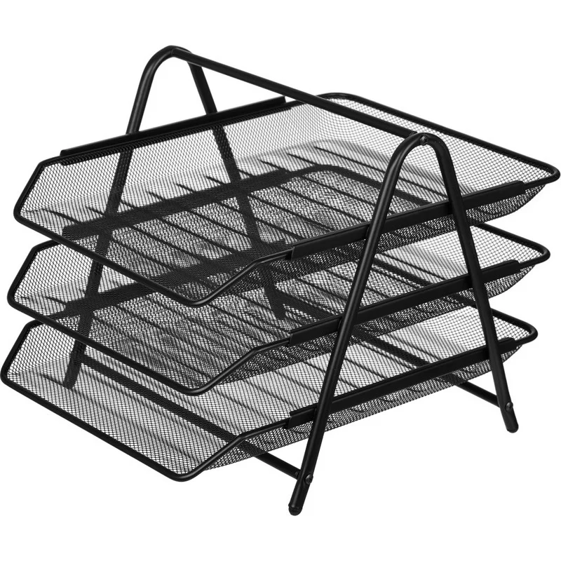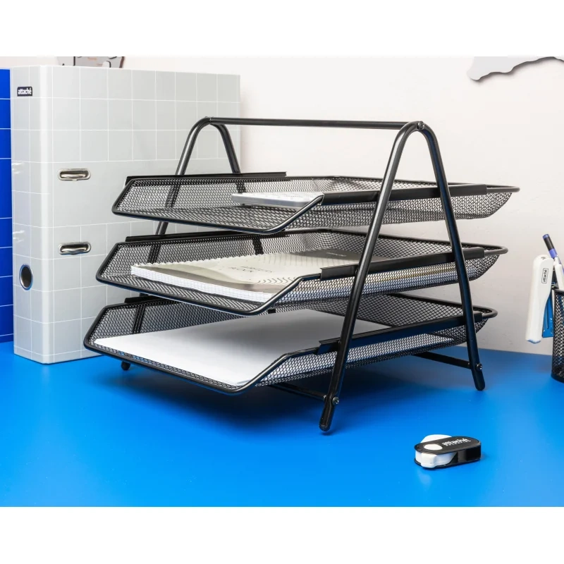 Лоток горизонтальный для бумаг Attache 3 секции, черный, металлическая сетка