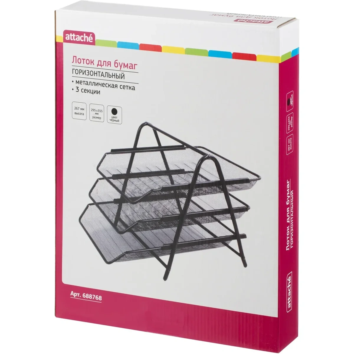 Горизонтальный трехсекционный лоток для бумаг Attache компактно сохранит на рабочем столе документацию, проспекты, каталоги и другую продукцию формата А4. Лотки могут использоваться отдельно от опоры. Выдвижной механизм обеспечивает лёгкий доступ к содержимому лотков. Изготовлен из высококачественной прочной металлической сетки. Выполнен в классическом черном цвете.
