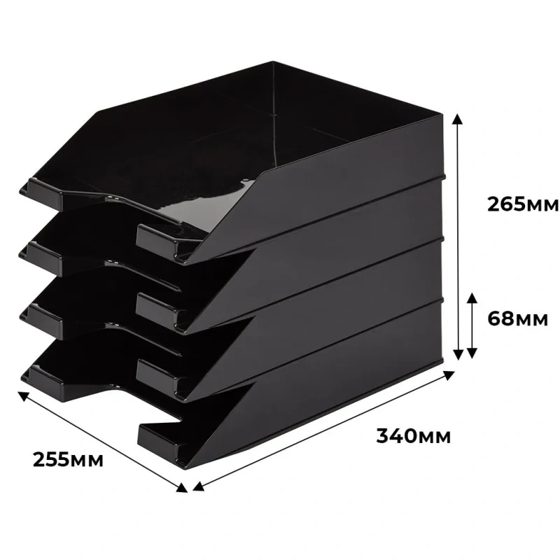 Лоток горизонтальный для бумаг Attache А4, черный, 4шт/уп