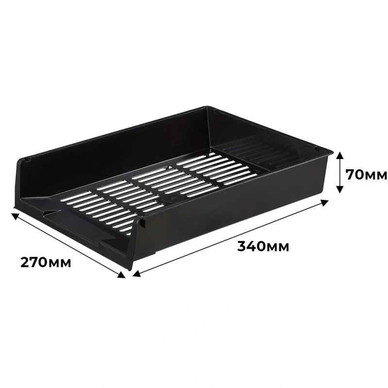 Горизонтальный лоток для бумаг Attache предназначен для хранения документов и печатной продукции формата А4. Решетчатое дно. Возможна установка друг на друга (штабелирование). Изготовлен из полистирола. Цвет: черный. Размеры (ВхГхШ): 70×340×270 мм. Вес: 0.23 кг. В комплекте нет этикетки для маркировки.