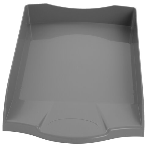 Изготовлен из прочного серого полистирола. Размер (ГхШхВ) - 340х270х60 мм. Обладает устойчивой конструкцией, благодаря которой удобен для хранения объемных документов и папок.