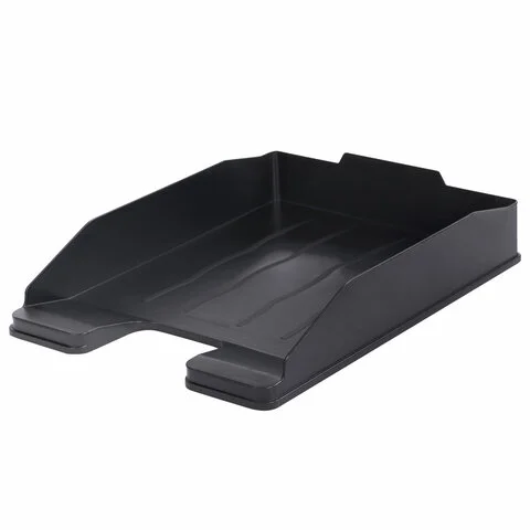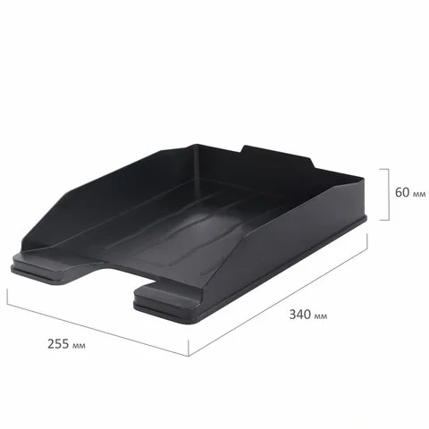 Классический лоток изготовлен из пластика черного цвета. Размер лотка - 340х255х60 мм. Обладает устойчивой конструкцией, благодаря которой удобен для хранения объемных документов и папок. Лотки можно устанавливать друг на друга.