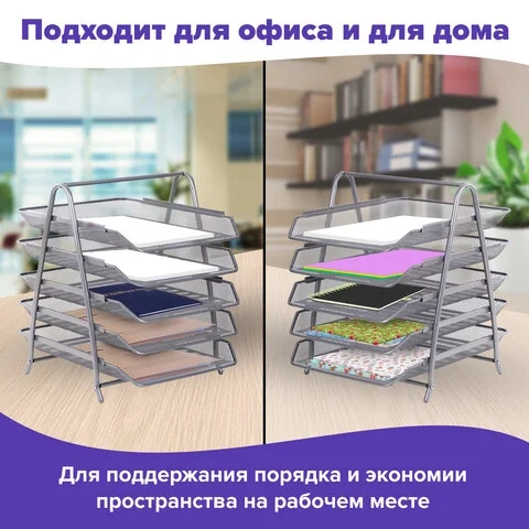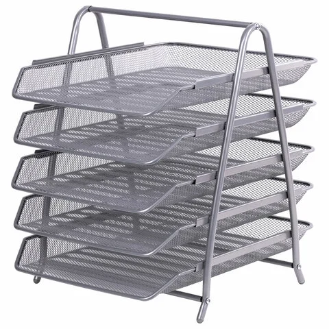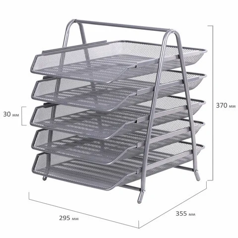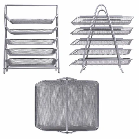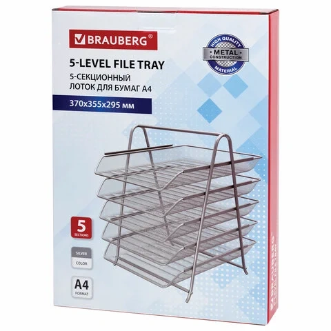 Лоток горизонтальный для бумаг BRAUBERG 'Germainum', 5 секций, 370х355х295 мм, металл, серебро, 2379