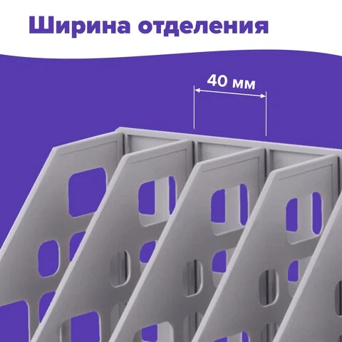 Лоток для бумаг вертикальный Brauberg MAXI Plus А4, серый, 240мм