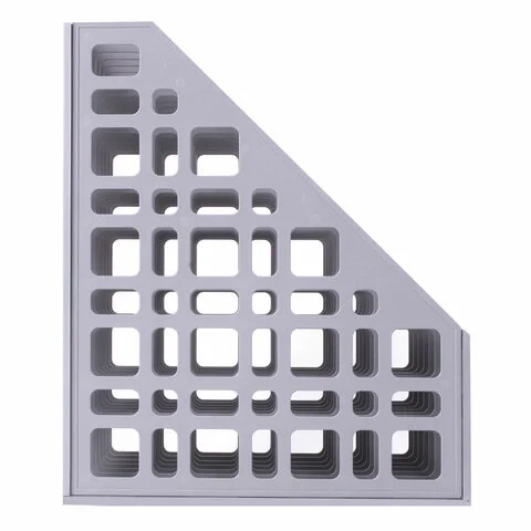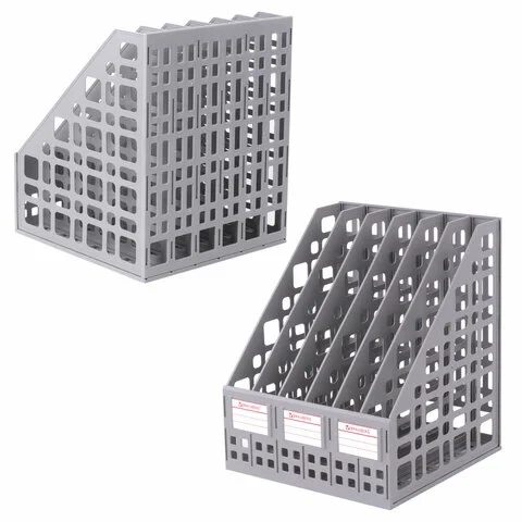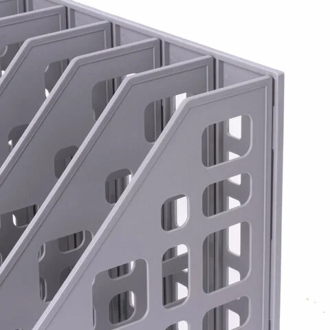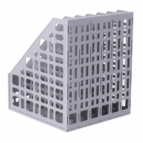 Выполнен в сером цвете с шестью отделениями. Предназначен для хранения каталогов и папок. Представляет собой прочную устойчивую сборную конструкцию с сетчатыми боковыми стенками. Размеры: высота - 295 мм, ширина - 240 мм, глубина - 250 мм.