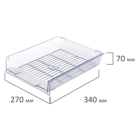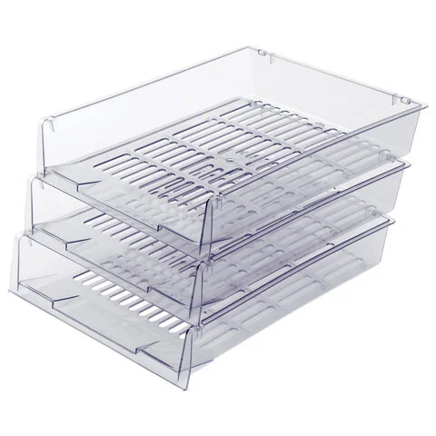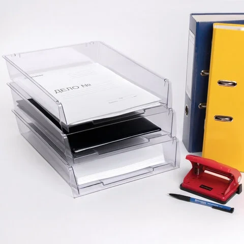 Лоток горизонтальный для бумаг Brauberg Office А4, прозрачный, 3шт/уп