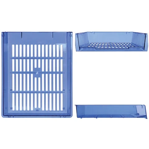 Изготовлены из прочного полистирола. Размер каждого (ГхШхВ) - 340х270х70 мм. Комплект из 3 лотков обладает устойчивой конструкцией, благодаря которой удобен для хранения объемных документов и папок. Выполнен в тонированном синем цвете. Поставляется в гофрокоробе.