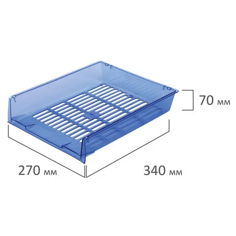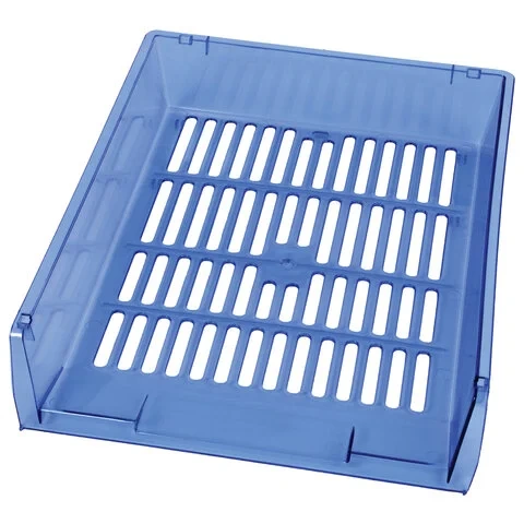Лоток горизонтальный для бумаг Brauberg Office А4, синий тонированный, 3шт/уп