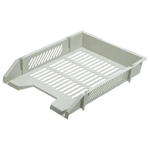 Изготовлен из прочного полистирола. Размер (ГхШхВ) - 343х262х58 мм. Обладает устойчивой конструкцией, благодаря которой удобен для хранения объемных документов и папок.