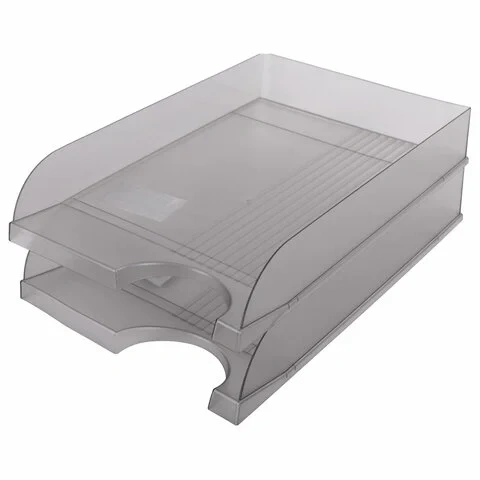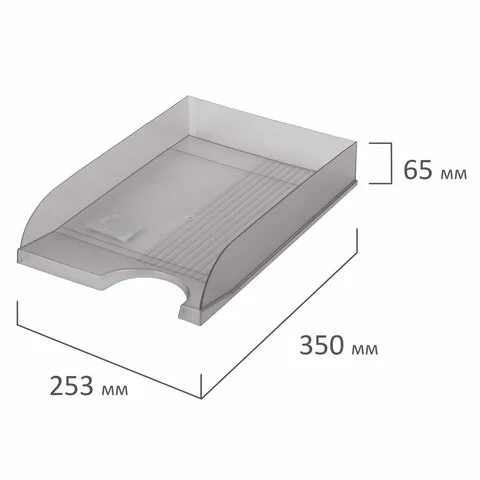 Лоток горизонтальный для бумаг BRAUBERG 'Standard', 350х253х65 мм, тонированный серый, 238348