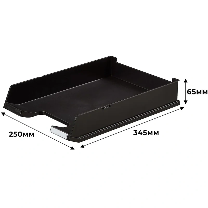 Специальная конструкция лотка позволяет соединять их в единую жесткую конструкцию, что удобно для организации рабочего пространства. Размеры (ВхГхШ): 65x345x250 мм. Вес: 0.295 кг.