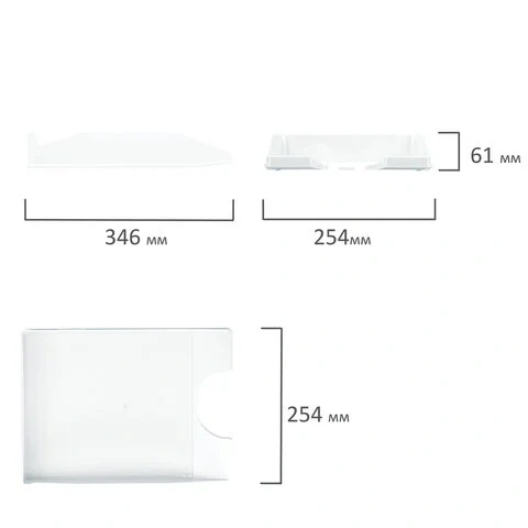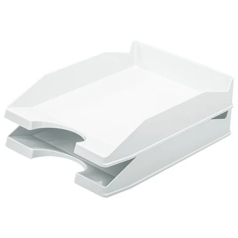 Изготовлены из прочного полистирола. Размер каждого лотка (ГхШхВ) - 346х254х61 мм. Комплект из 2 лотков обладает устойчивой конструкцией, благодаря которой удобен для хранения объемных документов и папок. Выполнен в белом цвете. Лотки могут быть установлены друг на друга или использоваться по отдельности.
