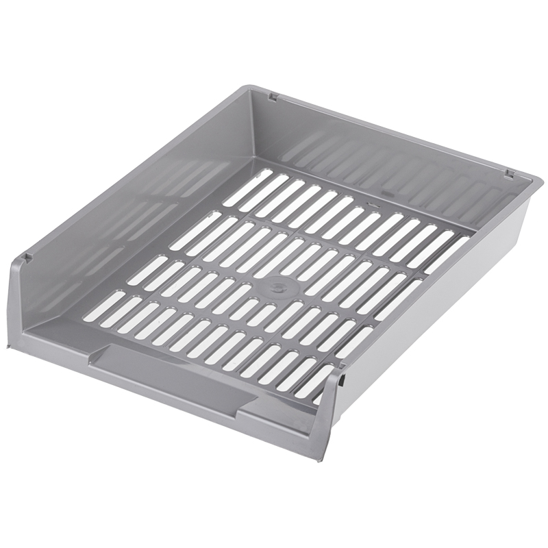 Вместительный лоток для папок, листов формата А4. Kлассический дизайн, сетчатая поверхность.Изготовлен из экологичного материала - полистирола.